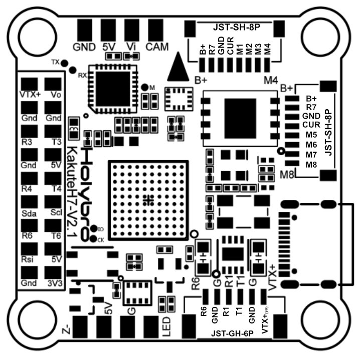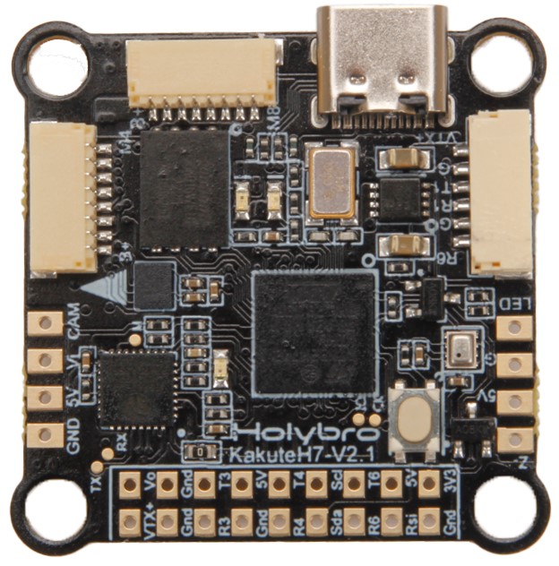 The Holybro Kakute H7 v2 Flight Controller is full of features including integrated Bluetooth, HD camera plug, dual plug-and-play 4in1 ESC ports, 9V VTX ON/OFF Pit Switch, barometer, OSD, 6x UARTs, 128MB Flash for Logging, 5V and 9V BEC, and bigger soldering pad with easy layout and much more.